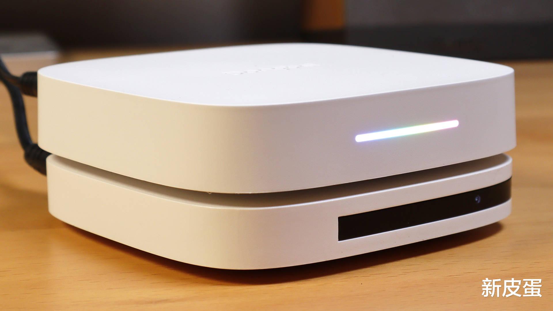 通过氛围灯的显示情况,可以直观看出机子目前的使用状态,比如丢失网络会闪红色走马灯,正常使用会显示多彩氛围灯,在待机状况下会显示纯色呼吸灯,关机则显示纯白灯。