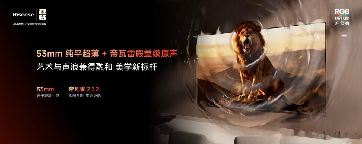 声学方面,海信联合帝瓦雷深度打造2.1.2声道影院级音响系统,165W超大峰值功率、3.7L大腔体搭配25W独立低音炮,60Hz低音下潜,结合专利指向性号角环绕音,带来全方位环绕的逼真音效,无需额外配备回音壁。