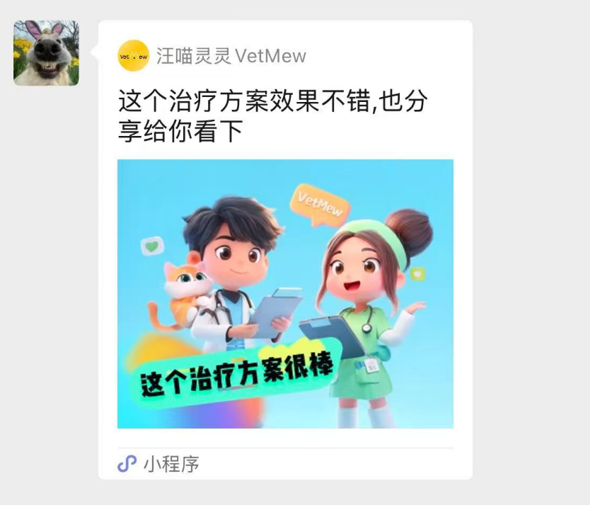 带有关键健康评估与护理建议的清晰小结,瞬间直达微信好友 / 社群,紧急情况不耽误,让每一份爱宠关怀都能实时送达!