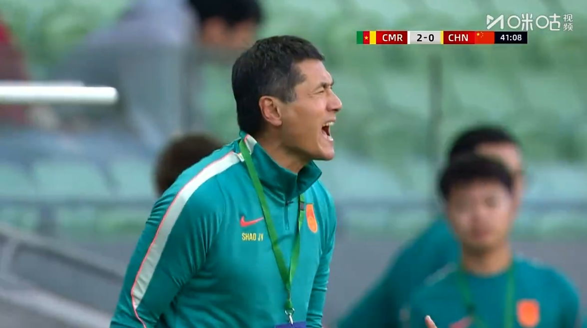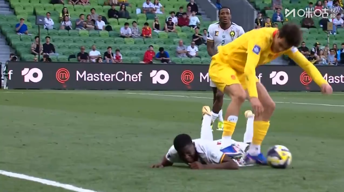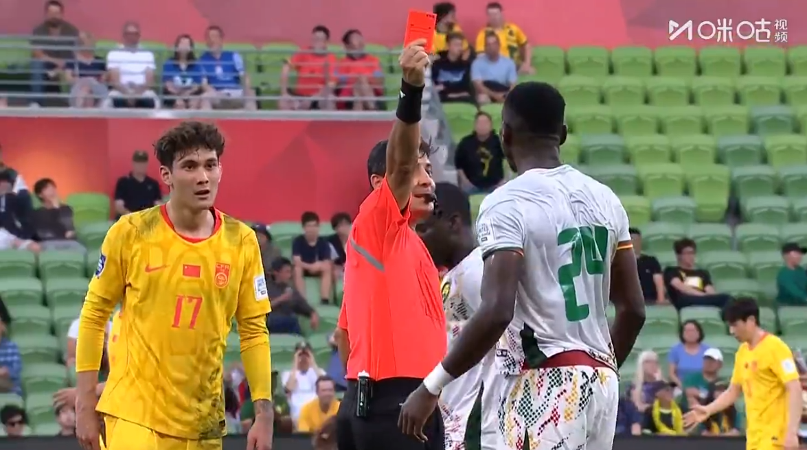 除了进攻给对手制造威胁,拜合拉木的防守也很强悍,一举制造了对手2张红牌。第57分钟时,他在跟对手一次争抢中伸腿拿球,不料一个倒地似乎脚踩压到对手身上(上图)。此举引起喀麦隆主帅的不满,当即发飙。期间可能是出言不逊而吃到红牌一张,并被罚到看台上(下图)。VAR介入后认定没事,拜合拉木连黄牌都没吃到。
