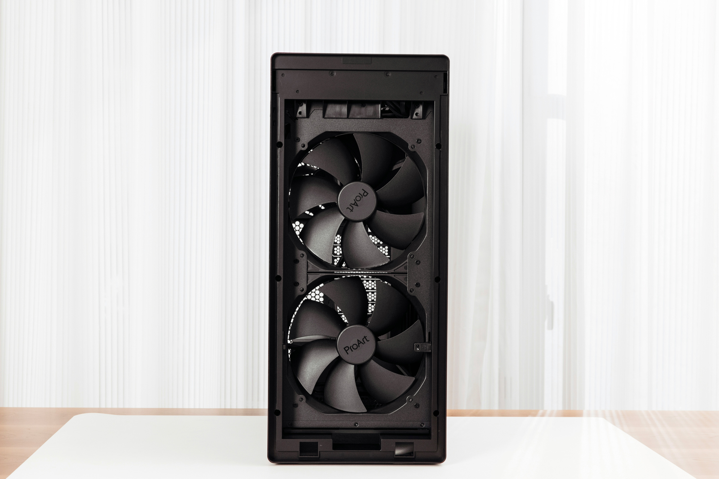 前面板使用20cm风扇的机箱不是很多,PA602用的是两个20cm,厚度38mm的超大型风扇,这个风扇规格都可以当排气扇使用了,在较低转速下就能提供更大的气流。