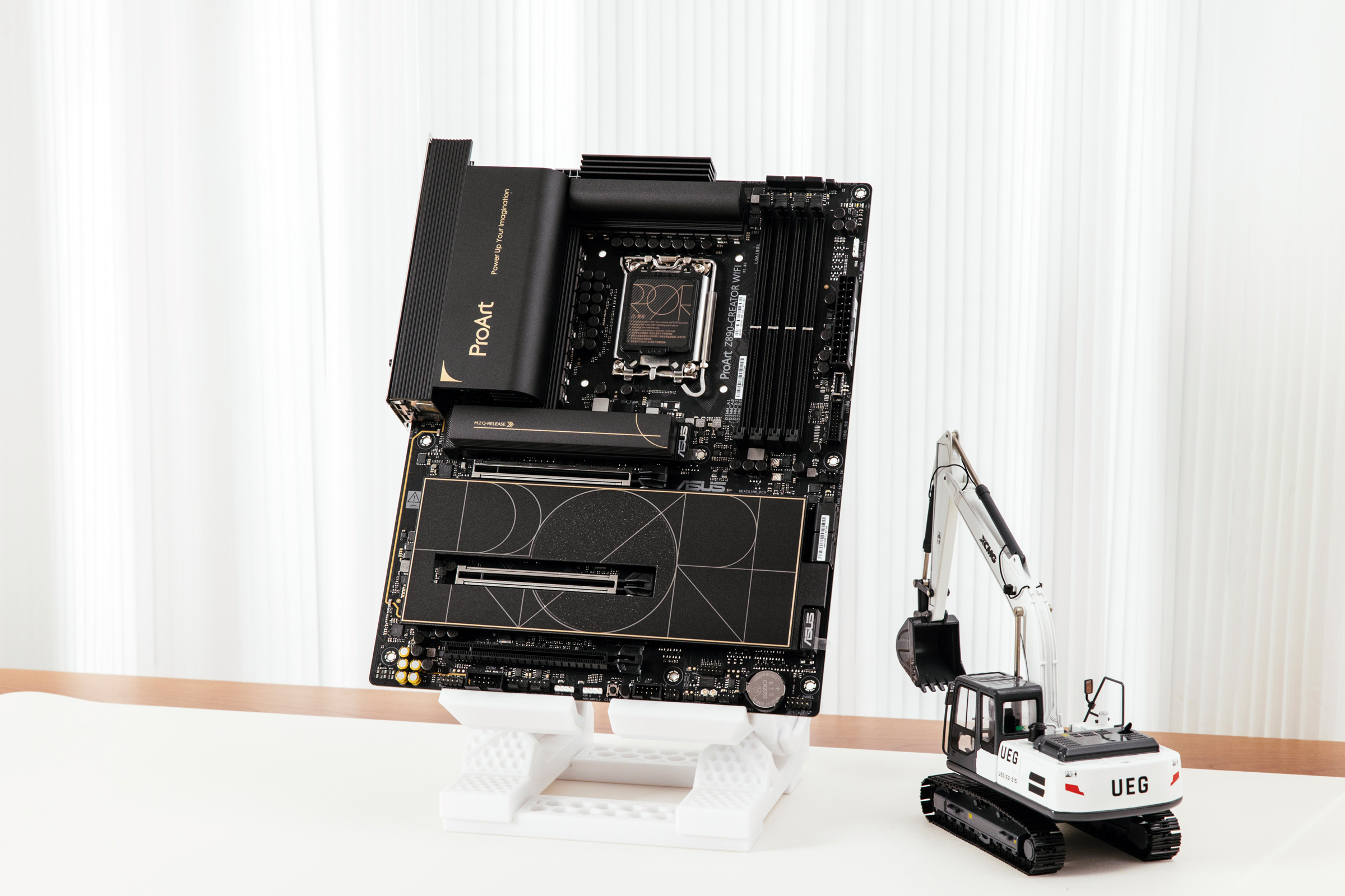 ProArt Z890 CREATOR WiFi(后面简称PA Z890),全黑PCB,点缀少量金色和白色元素,黑金配色也是非常经典的配色,无任何浮夸元素,很低调。