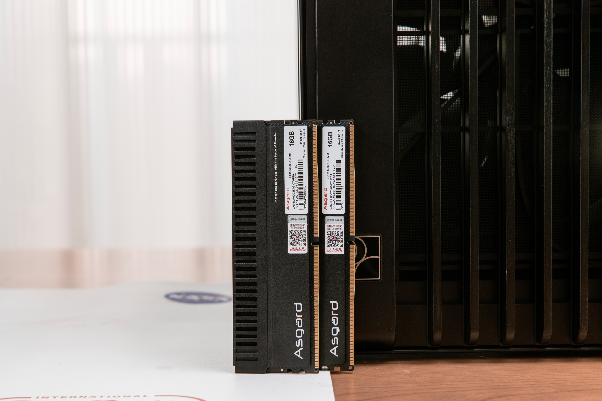 阿斯加特的雷神DDR5 6000 16GB X 2,主打一个无光质感,散热片采用了高目数细腻喷砂工艺,正面简简单单为thor字样。