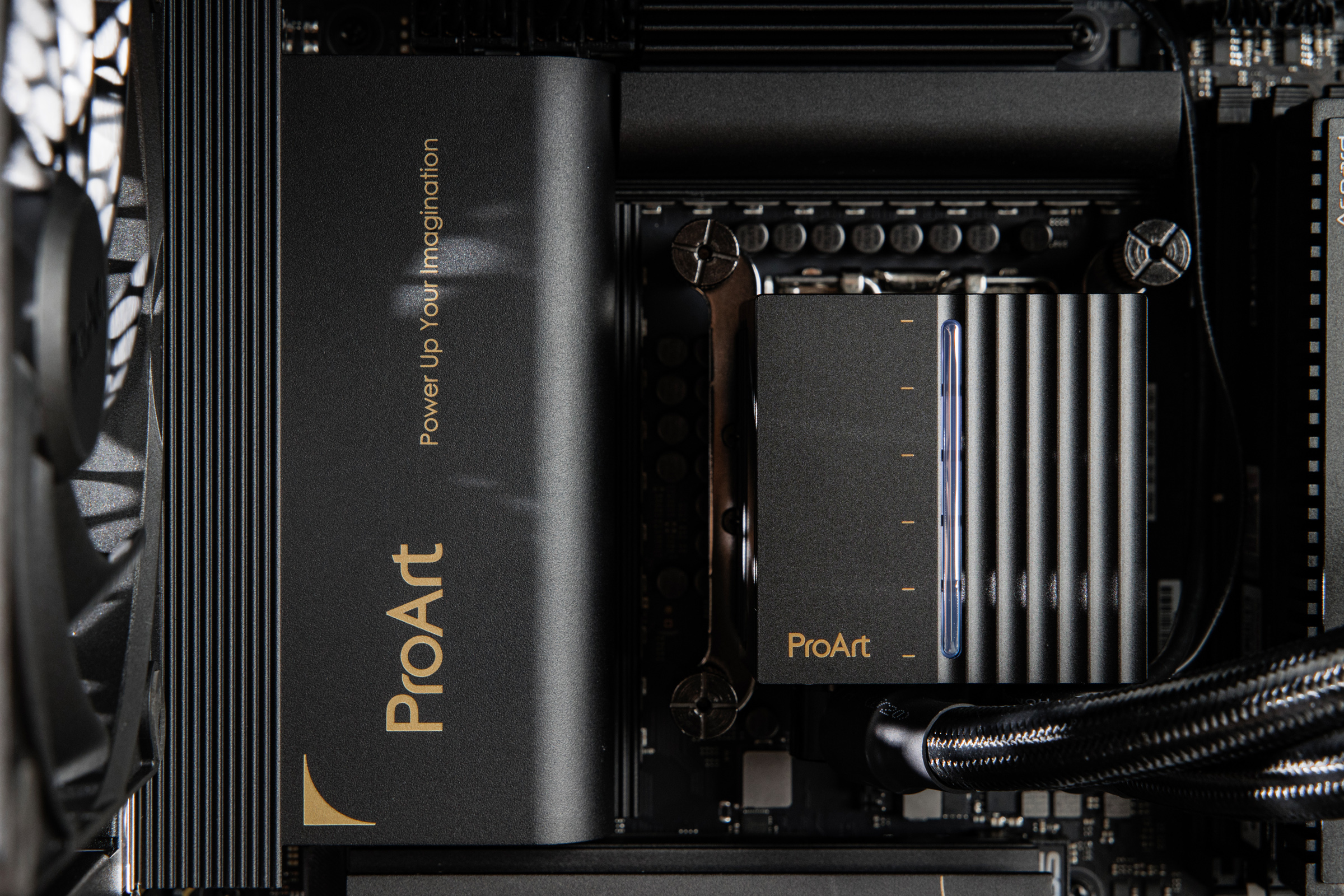 华硕ProArt Z890主板和ProArt LC360水冷冷头以及阿斯加特内存特写,质感很棒。
