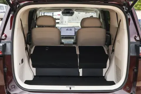 在储物空间方面,后备厢常规容积为 348L,即便满载 7 人,也能轻松装下两三个大号行李箱;若将座椅放倒,容积可扩展至 2700L,能够轻松装载大件物品。此外,车辆还配备了一系列实用配置,包括电动尾门、双侧电滑门、前排无钥匙进入、自动三区空调等基础配置,以及前排多层隔音玻璃、车载香氛系统等提升舒适性的功能,兼顾了日常使用的便利性与乘坐的舒适体验。
