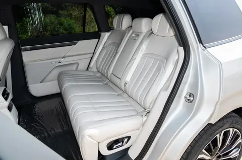 当 三 代同堂一同长途出行时,eπ008五座版同样表现较好。其综合续航里程达到1220km,中途无 需频繁寻找充电桩,让旅途更加顺畅。部分版本的后排座椅支持角度调节和按摩功能,能在一定程度上缓解长辈的旅途疲劳。孩子则可以在 L 型贵妃榻上休息,后备箱在装满行李后仍有剩余空间。