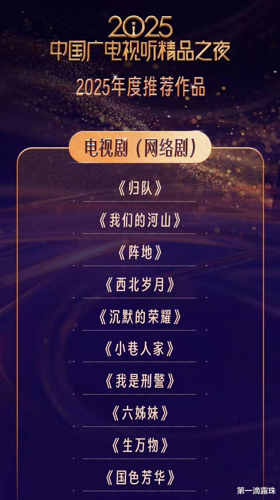 2025年度推荐作品中,杨紫李现领衔主演的古装剧《国色芳华》上榜电视剧(网络剧)板块。