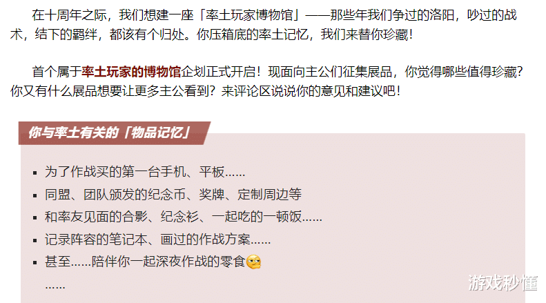 当行业普遍将玩家视为需要转化的流量时,率土却选择将玩家视为故事的共同创作者。2017年,玩家“夜袭徐州”的经典战役被改编成皮影戏,在中国民间艺术馆上演;2019年,玩家创作的文言檄文被国家图书馆收录,与千年古籍并列;2025年,项目组更是直接启动“率土玩家博物馆”企划,向全国征集承载记忆的物品。
