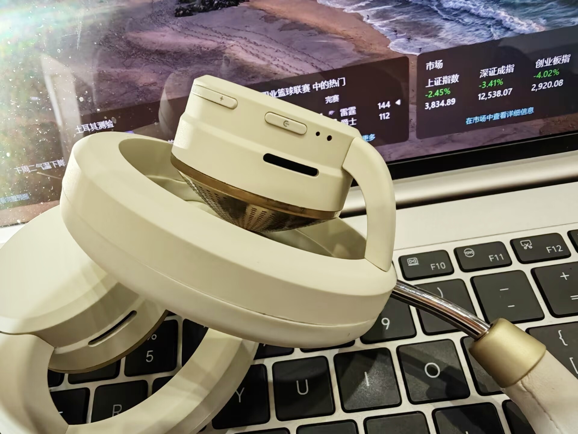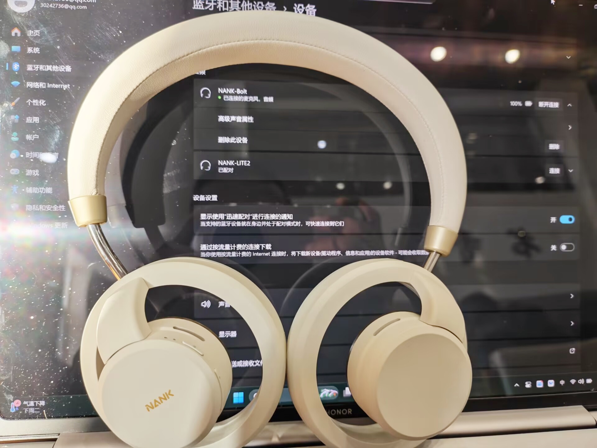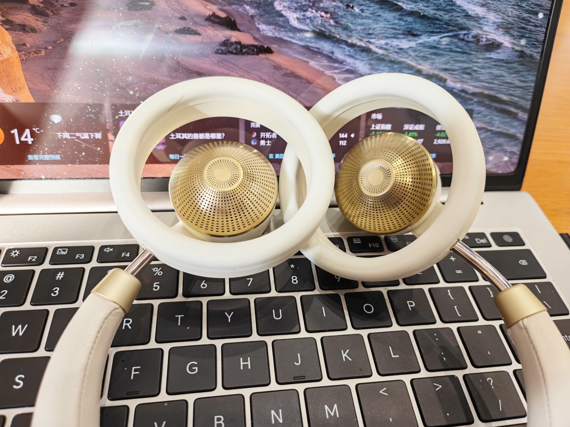南卡Bolt开放式头戴式耳机共有黑白两款,笔者拿到的是白色版本,其采用金属和塑料材质设计,如此设计采用的是做好了重量与手感的舒适提升。在其正面可以看到金灿灿的南卡的logo非常的醒目。