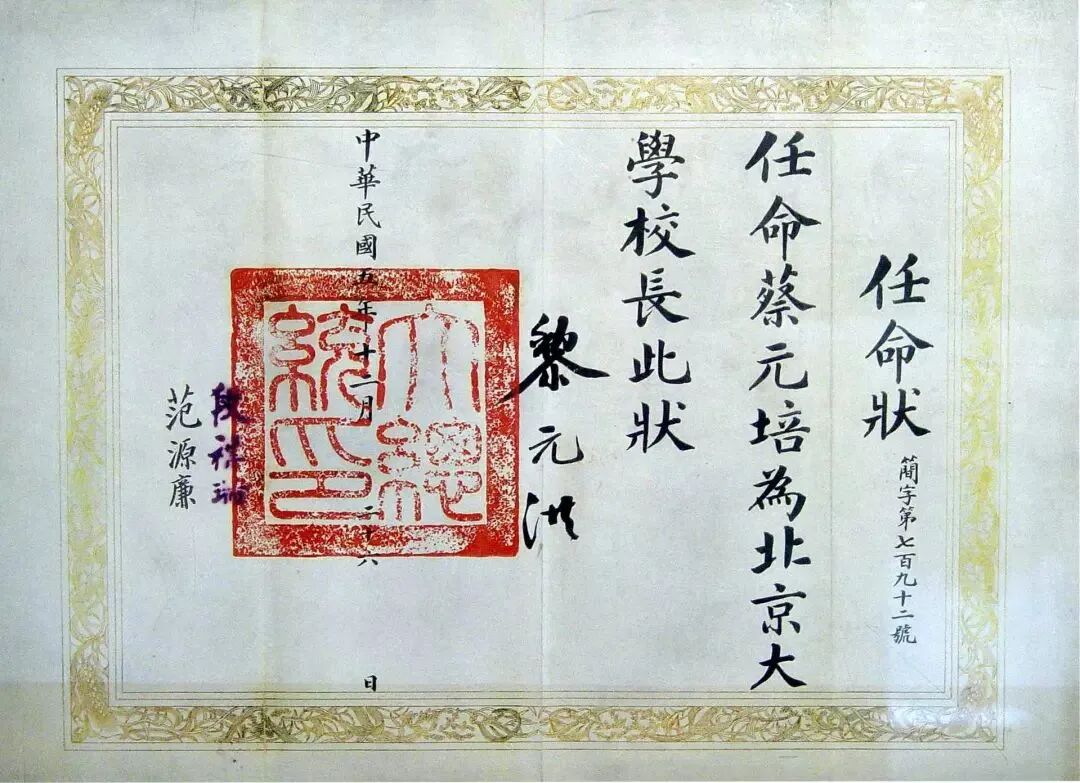 蔡元培北京大学校长任命状