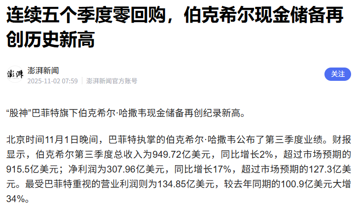 业绩好的很,不过老头现在储备3817亿美元,不知道想啥呢……等什么呢……