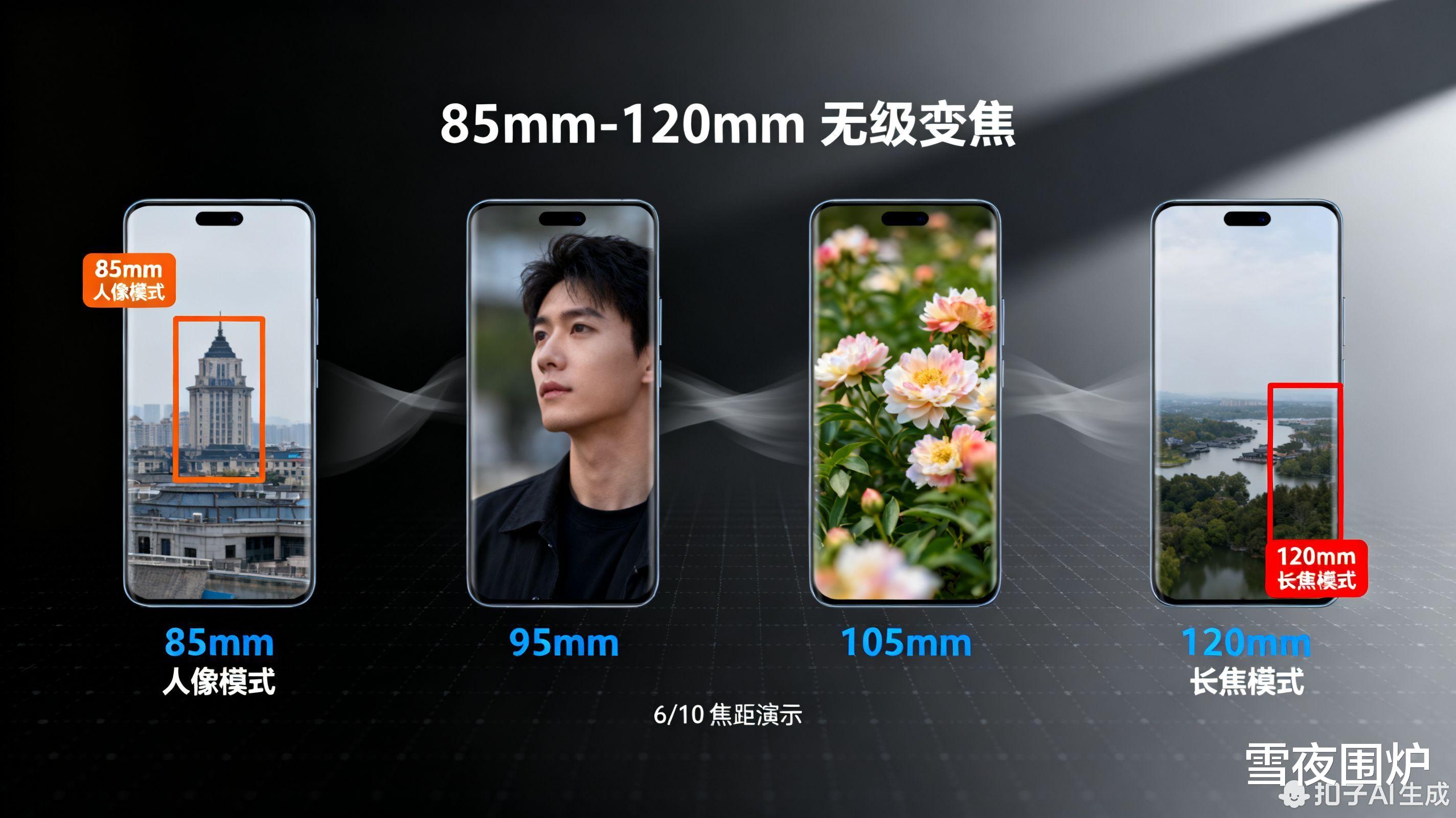 等效焦距可在85mm-120mm间连续变化(传统手机需两颗定焦镜头)