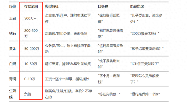 说实话,看到这份存款段位表,我第一反应是——"我家存款是来搞笑的吗?"