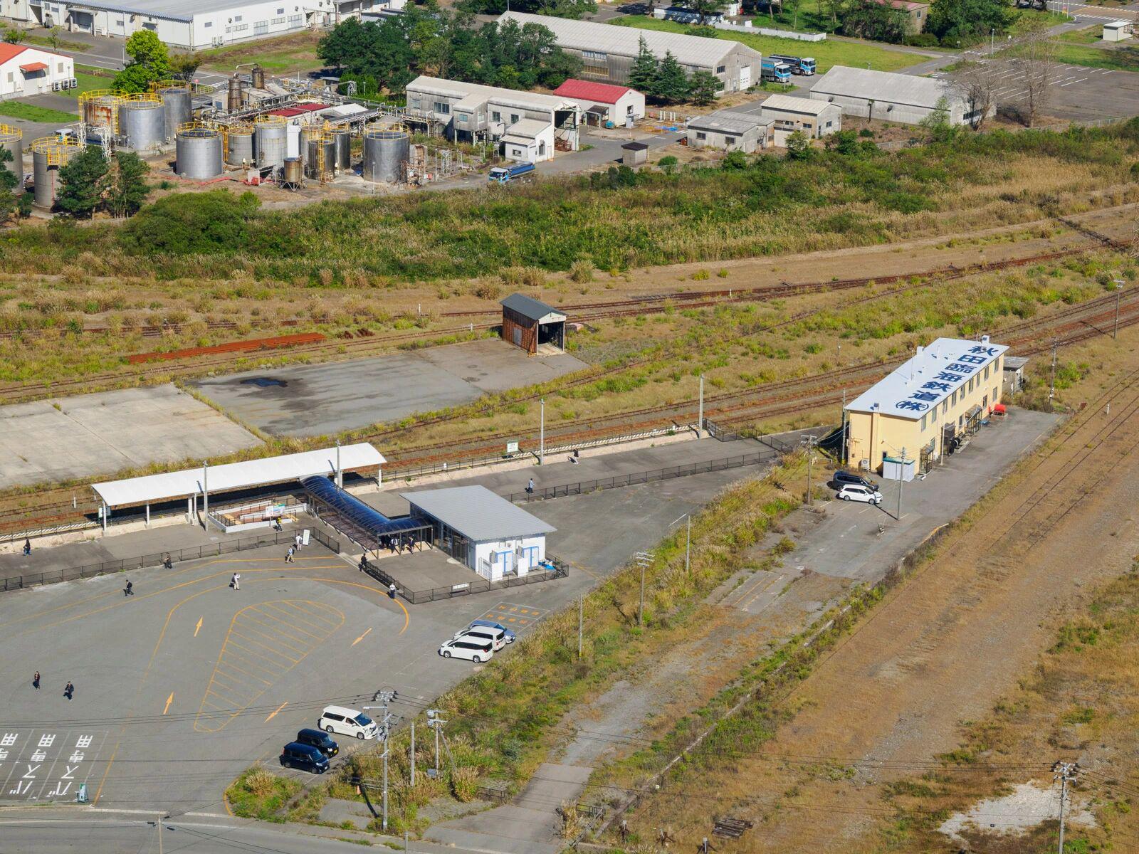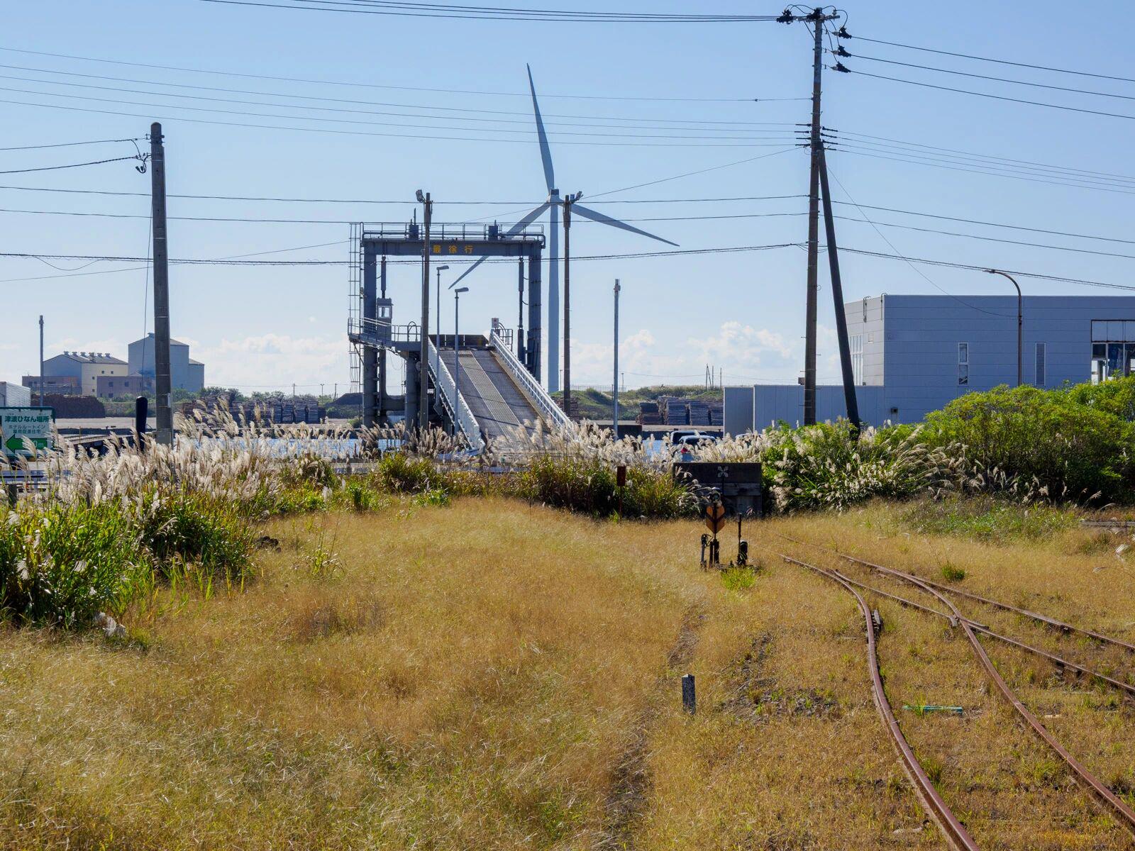 列车开出后的秋田港站。 如果你俯视它,你会发现它是一个广阔的货运站。 实际上,邮轮列车开始运行是在2017年。 但是,由于包括货物在内的需求下降,决定取消每条秋田港线2026年7月。 另外,右上建筑物屋顶上写的“秋田临海铁路”也是以秋田港站为起点进行货物运输的铁路公司,但于2021年结束了业务。