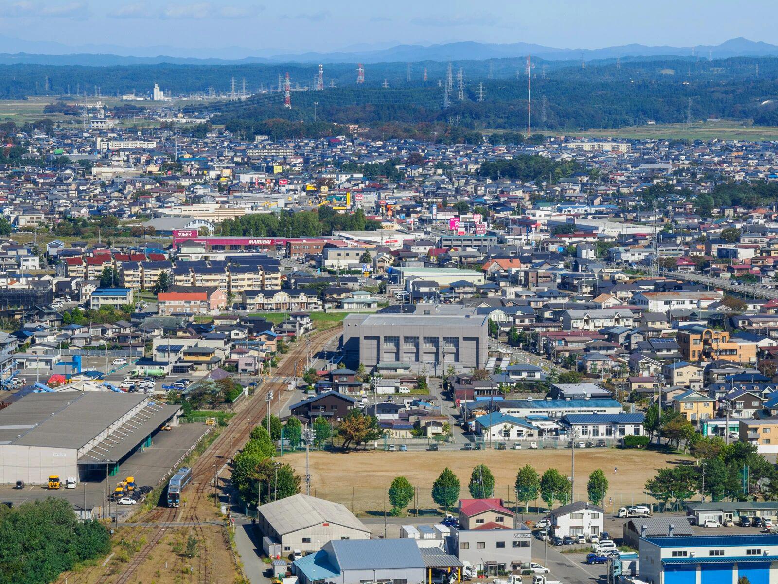 从展望台还可以看到刚才通过的土崎站。 不使用邮轮列车的情况下,这里是最近的车站,但距离1.7km左右。