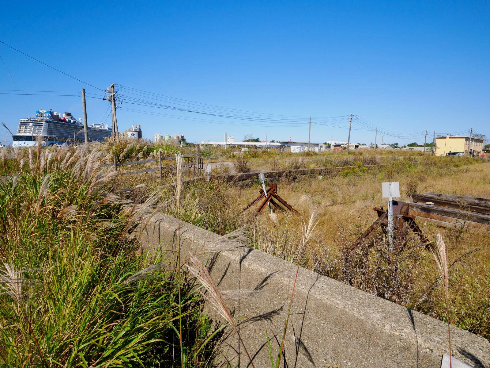 因为还有时间,所以在周边散步。 秋田港站的调车场上到处长着草。