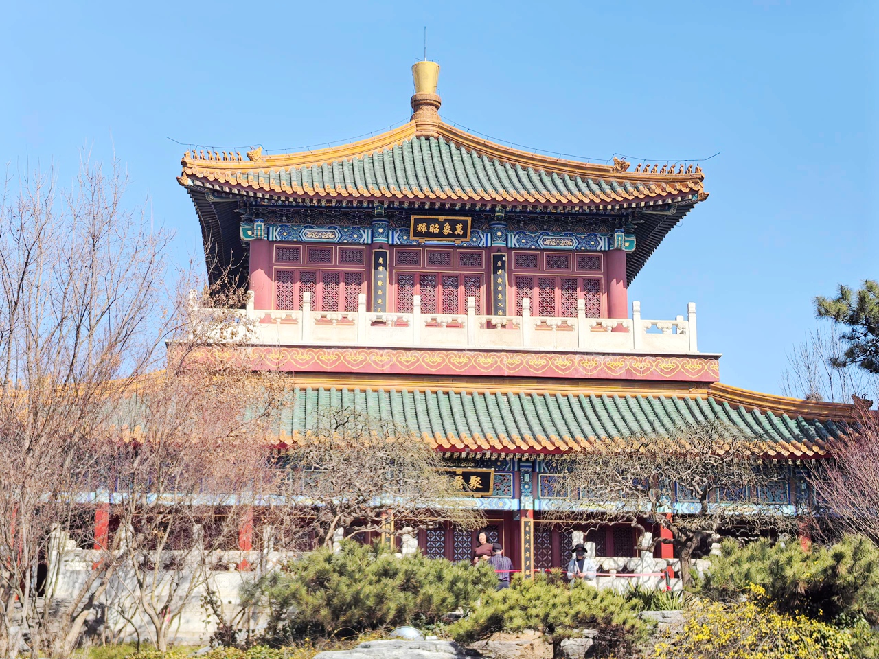 万景阁是园林园的核心建筑之一,采用重檐攒尖顶,保留了清代官式彩绘工艺,色彩艳丽,图案精美,飞檐翘角,气势恢宏。登上万景阁,可俯瞰整个园林园的景致,远山近水、亭台草木尽收眼底,视野开阔,心旷神怡。阁内陈设古朴典雅,摆放着传统的桌椅、摆件,尽显中式美学的韵味,让人仿佛穿越回古代,感受皇家园林的恢弘气度。