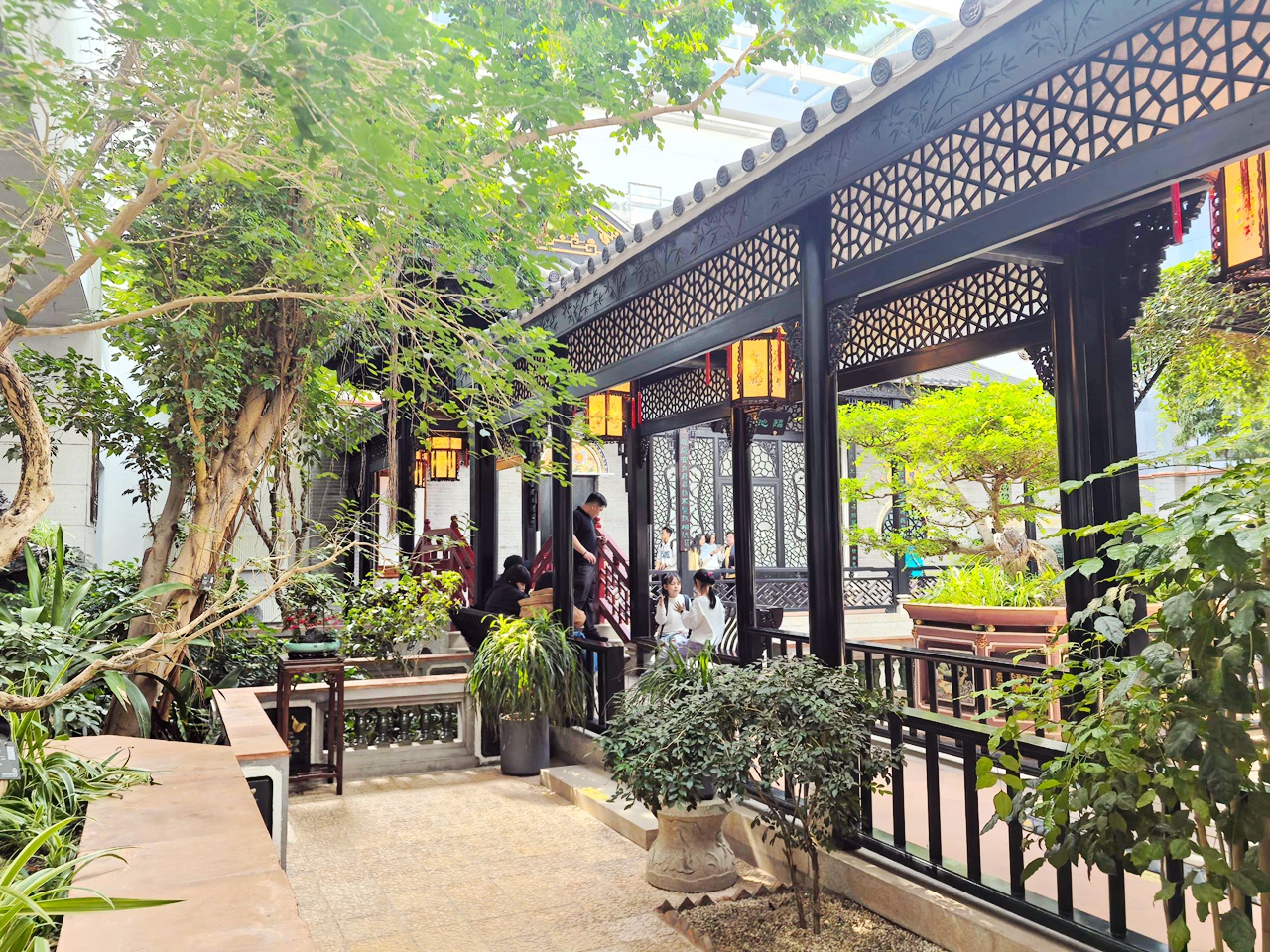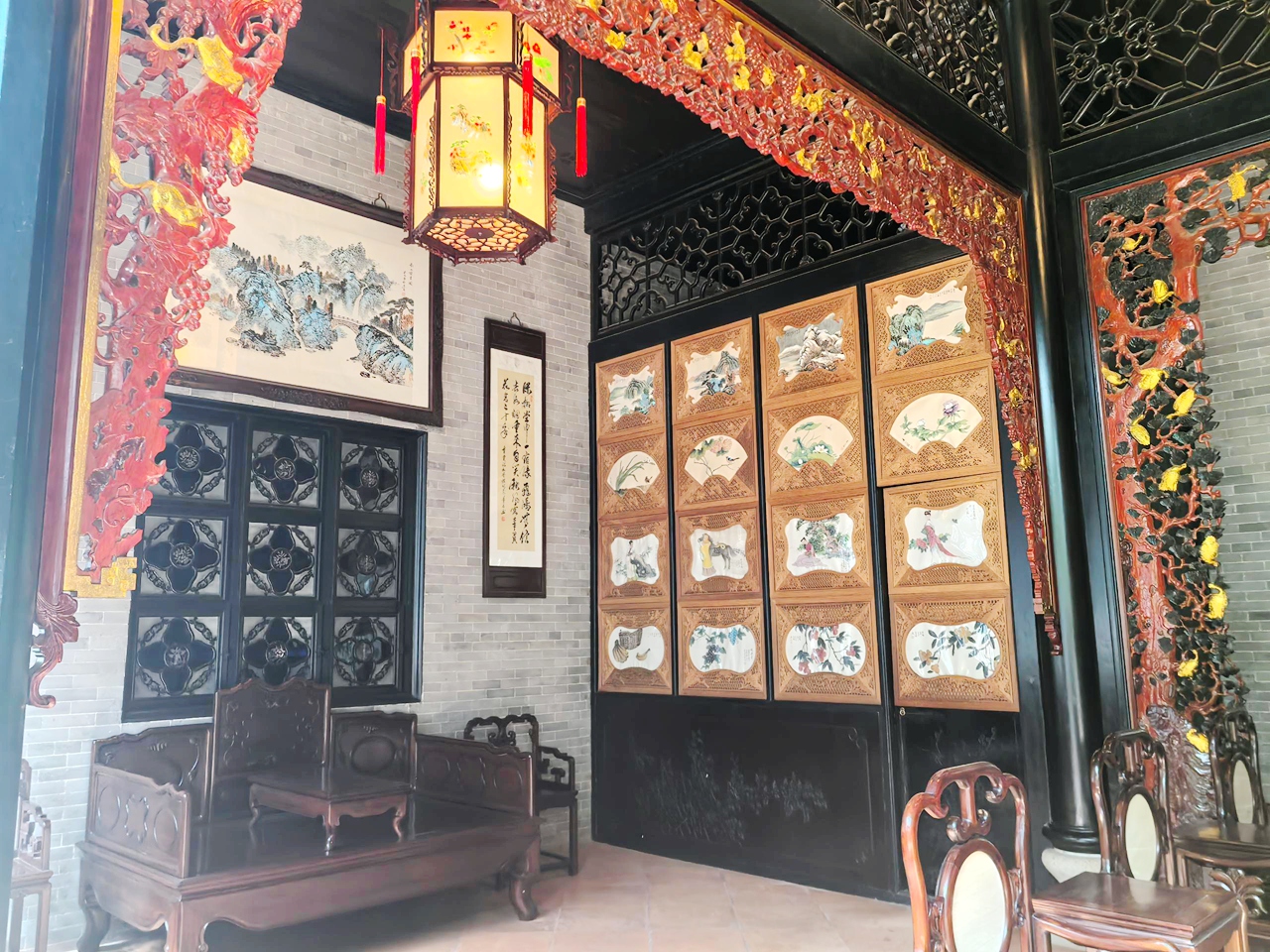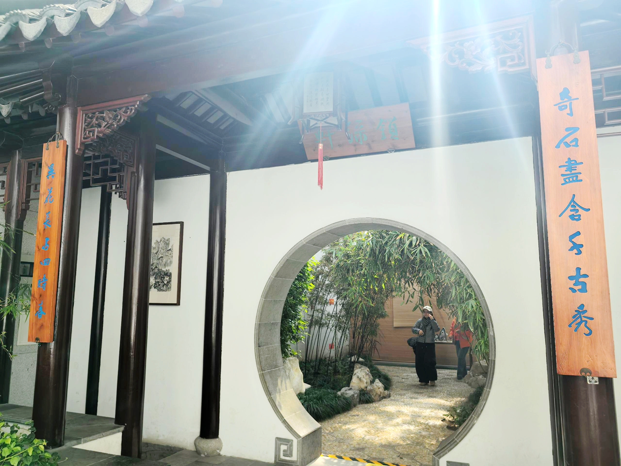 馆内的每一处空间都经过精心设计,没有多余的冗余装饰,只有简洁大气的布局,与展品、景致相互映衬。阳光透过窗棂,洒在青砖地面上,光影斑驳,与室内的山水置石、绿植花木相映成趣,营造出“藏风聚气”的静谧氛围,让参观的人不自觉地放慢脚步,静下心来,感受园林建筑的独特魅力。