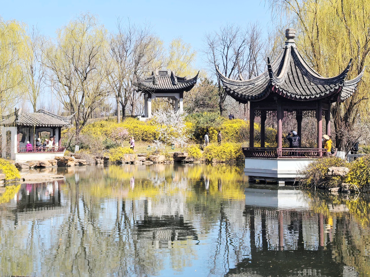 春日的园林园,是一幅生机勃勃的画卷。冰雪消融,溪水潺潺,草木抽出新芽,桃花、杏花、梨花竞相绽放,粉白相间,香气扑鼻。柳枝抽出嫩黄的枝条,随风摇曳,倒映在水中,灵动多姿;迎春花、连翘花缀满枝头,金黄耀眼,为园林增添了几分生机与活力。漫步在春日的园林园,仿佛置身于花的海洋,微风拂过,花香四溢,让人心情舒畅,忘却所有烦恼。