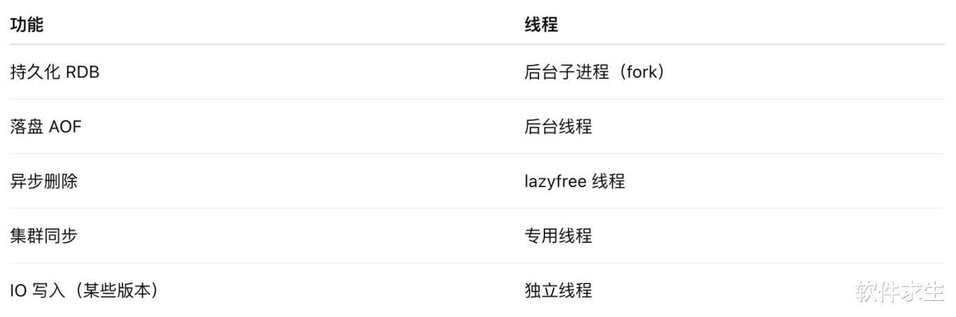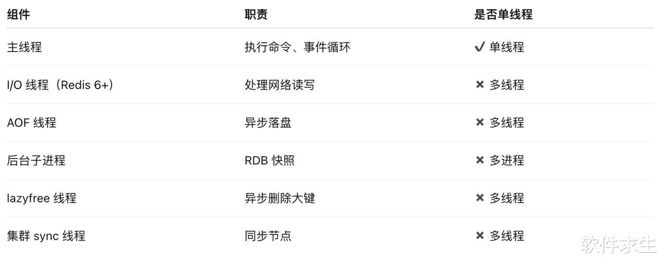 Redis 并不是只有一个线程:IO、持久化、集群、异步删除、过期清理,这些都有辅助线程。