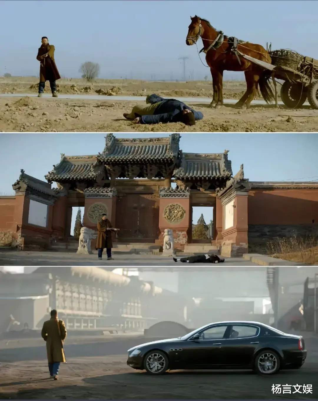 高速公路贯穿村庄的构图充满隐喻。飞驰的宝马与慢行的牛车在同个画面里对峙,后视镜中倒退的不仅是风景,更是整个农耕文明的背影。台商宝马车里的《林冲夜奔》唱段,让古典侠义精神在资本逻辑面前显得如此荒诞。