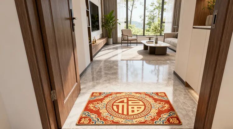 门垫宜选红色、金色或带有吉祥图案的款式,寓意“开门见喜、步步高升”;门帘则推荐棉麻材质,整洁无破,避免悬挂尖锐或暗色系装饰。