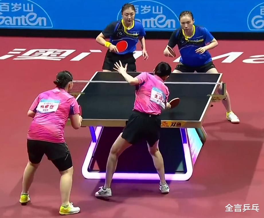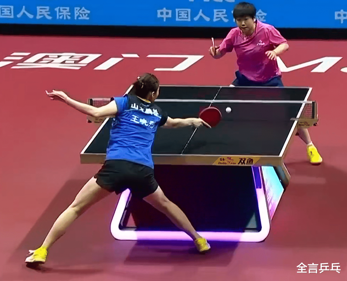 陈梦/王晓彤3-0何卓佳/王添艺:从排兵布阵上看,山东队在首盘就派陈梦出战,颇有田忌赛马之意,而她与王晓彤的对手是两位特殊打法运动员组成的配对何卓佳(反手长胶)/王添艺(正手正胶),结果河北队组合没有打出太多威胁就被陈梦/王晓彤连赢11-8、11-7、11-5拿下,山东队由此而率先拿到1分。