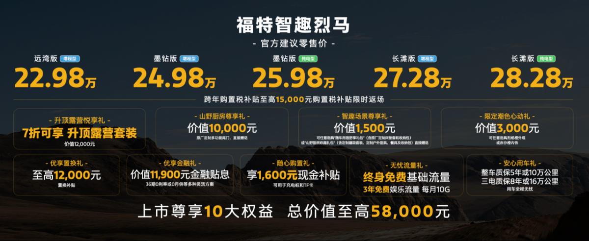 但“十大尊享权益”合计至高5.8万元:升顶露营礼、山野厨房、置换补贴、金融贴息、终身基础流量……这些并非噱头,而是直接降低使用成本。