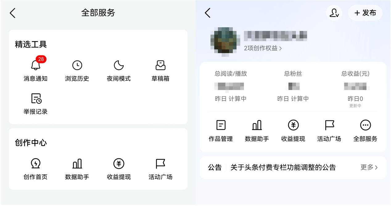 创作中心大部分核心功能上线:在“我的”页面点击“全部功能-创作首页”即可进入创作中心,集成创作首页、作品管理、数据助手、草稿箱、评论管理、客服中心、创作权益、活动广场、收益提现等一站式服务,助力创作者更高效地进行内容创作与变现;