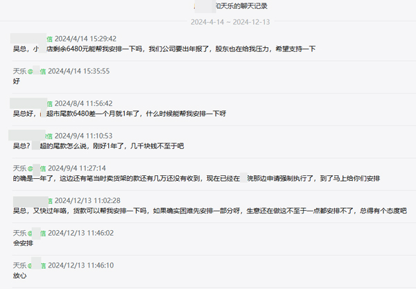 提醒告知:2023年9月前,吴*云购买预包装食品所产生的6480元货款,至今仍未支付。供应商已多次沟通催要,但始终无果,望大家警惕。