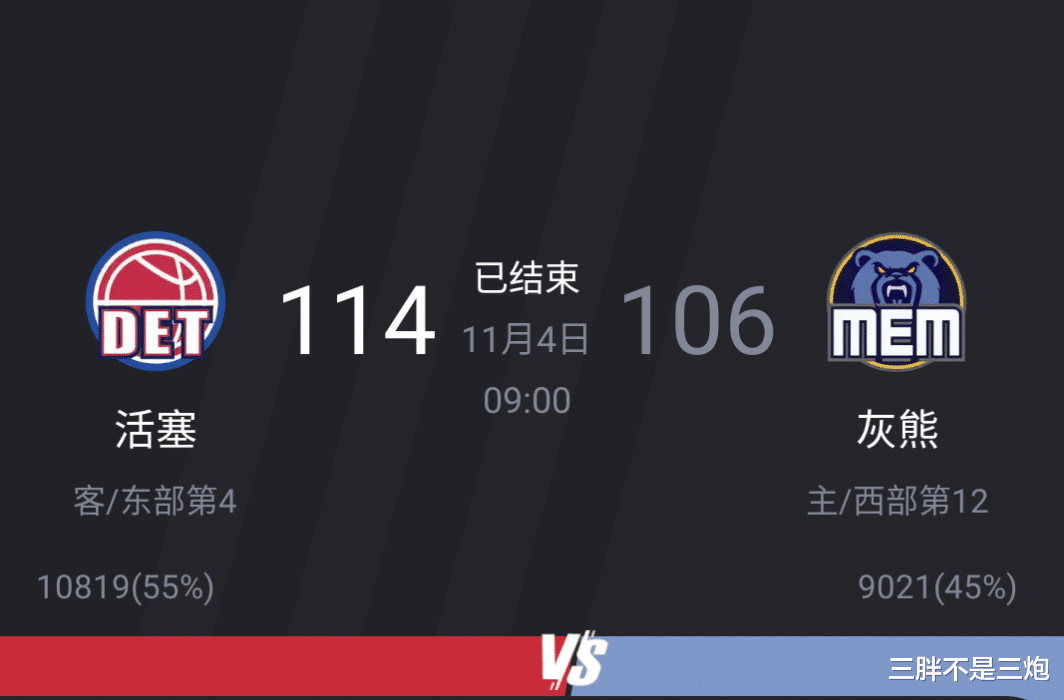 活塞:全队114分、总命中率50.6% 、三分命中率32.3%