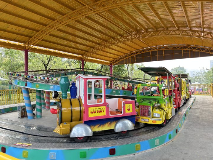 游乐园不设围墙,就在杭钢公园里,平时有不少市民经过,都会往里多看几眼。傅明笑着说:“很多人经过都会问一句,什么时候开放,我们已经被催更很久。”