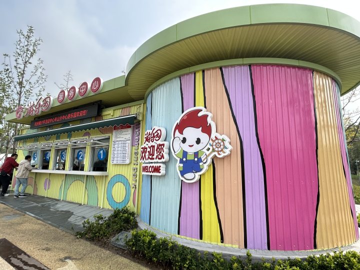 游乐园位于杭钢公园的东南角,站在半山路和炼铁街的路口,一眼就能看到这片五颜六色的童话世界。