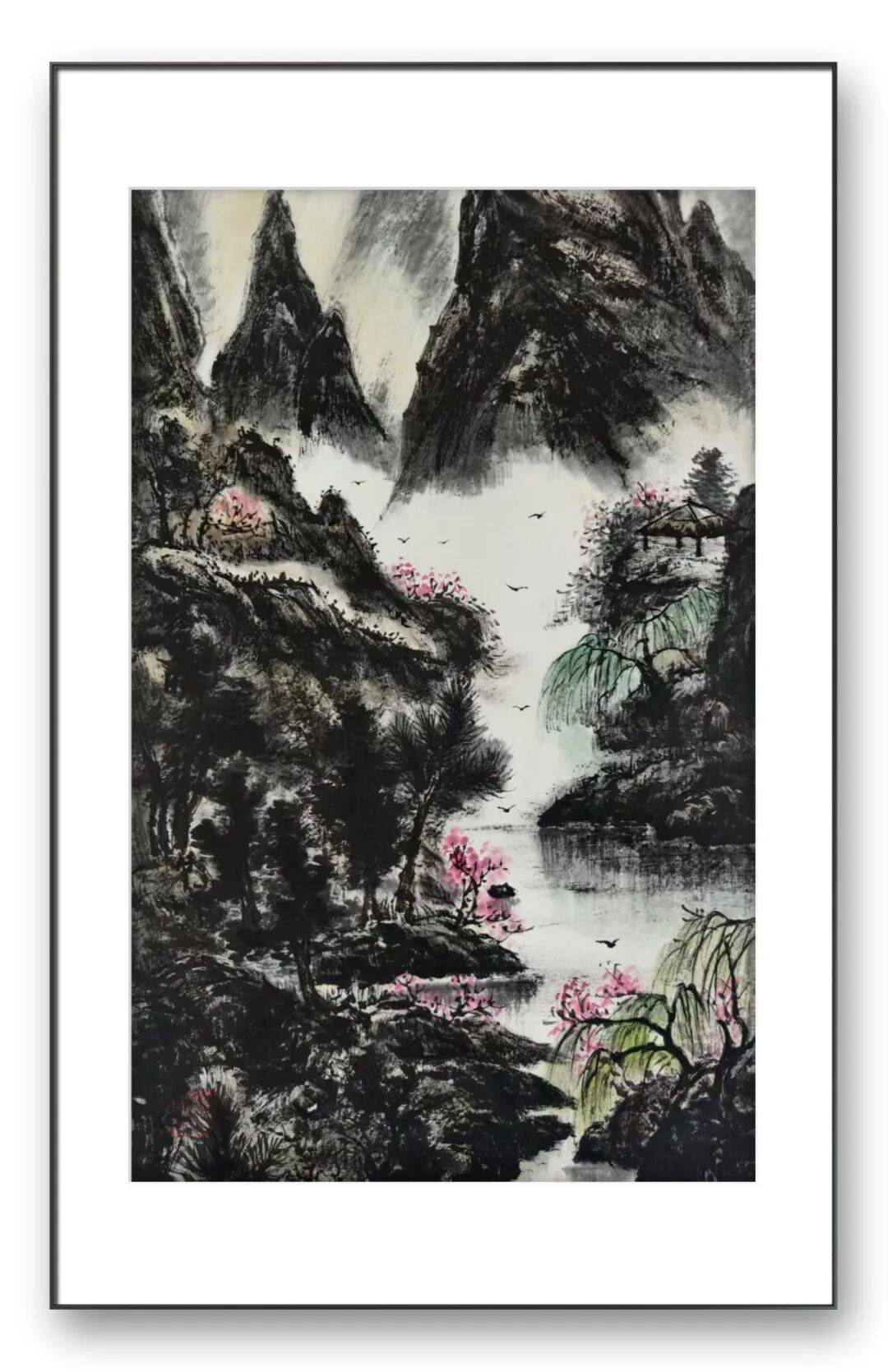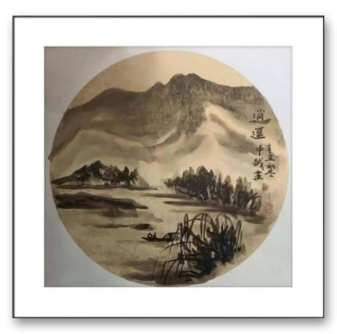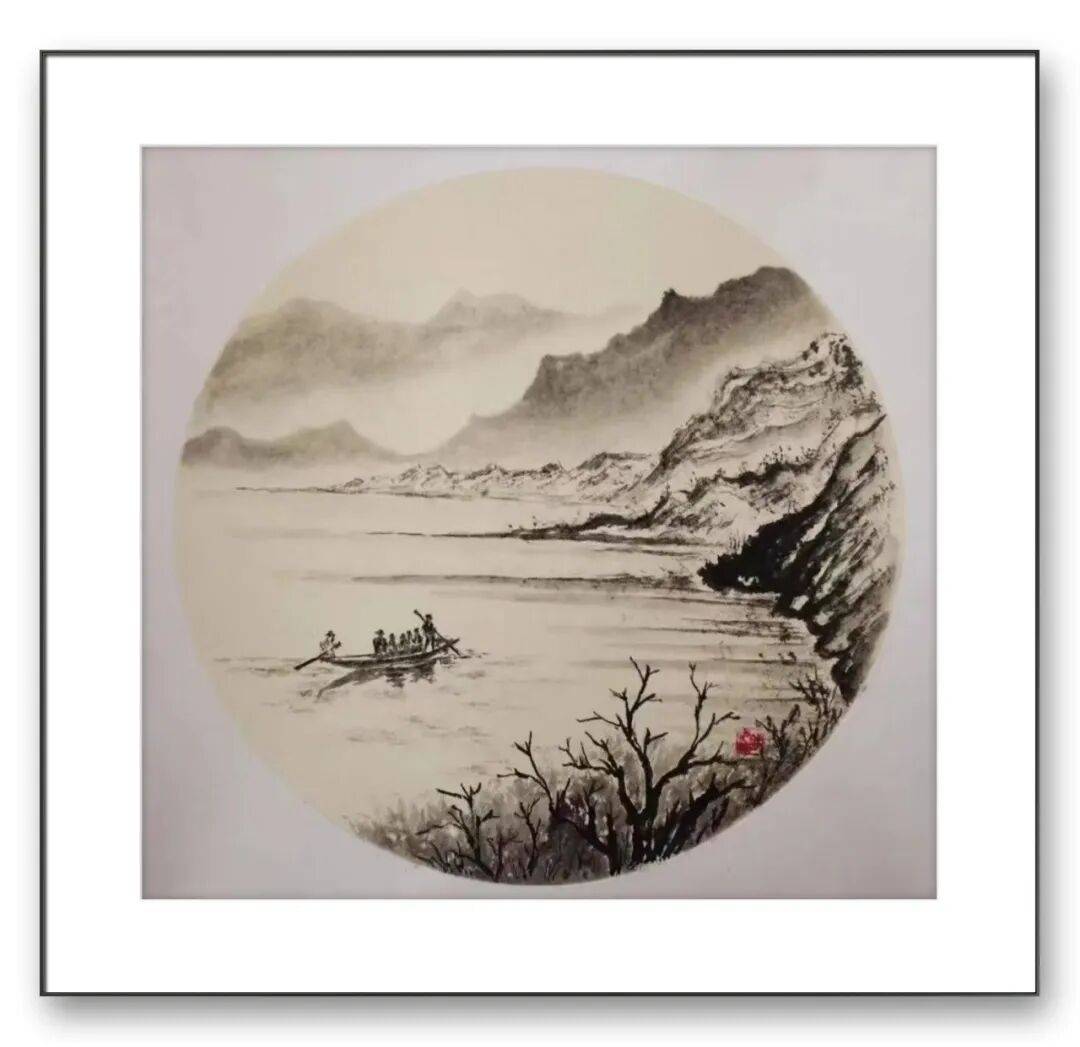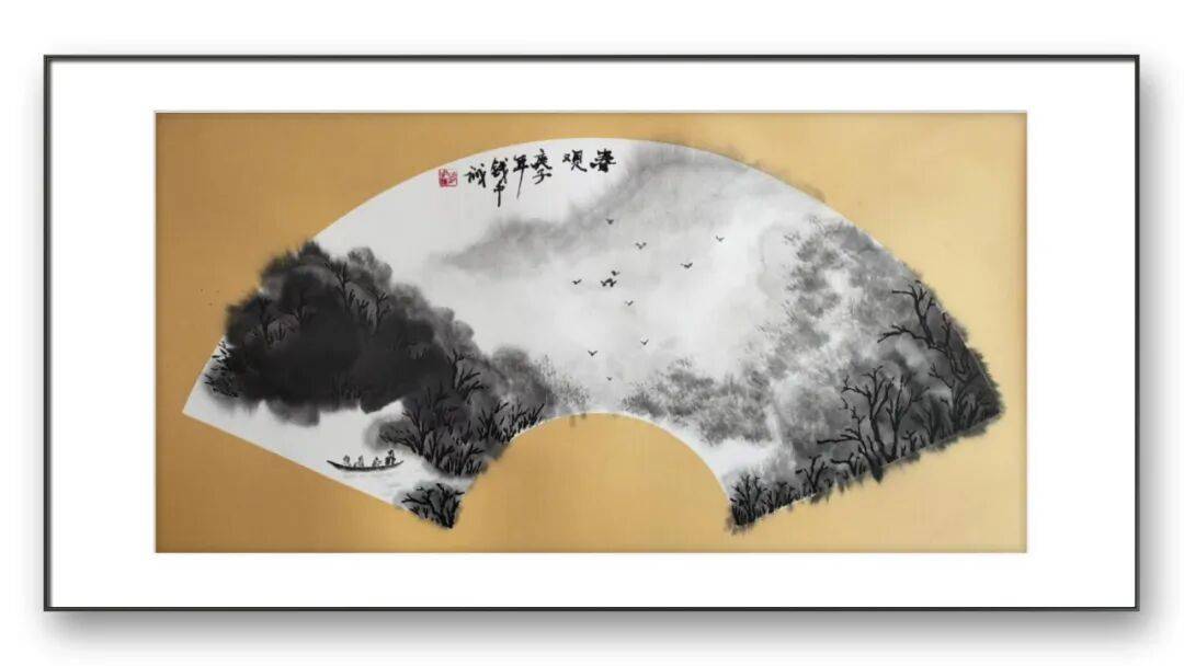 钱中诚先生的作品,从不满足于视觉的浅表呈现,而是致力于构建可游可居的精神意境。他的山水,是“外师造化,中得心源”的产物,每一幅都凝结着对自然与生命的深度思考。远山如黛,江面上孤帆远影,群鸟翱翔于空濛之间。这不是对江南水乡的简单摹写,而是他心中“江湖远阔,生命悠然”的意境投射。画面的留白与墨色的浓淡,营造出咫尺千里的空间感,让观者在笔墨间感受到时间的流淌与生命的自由。