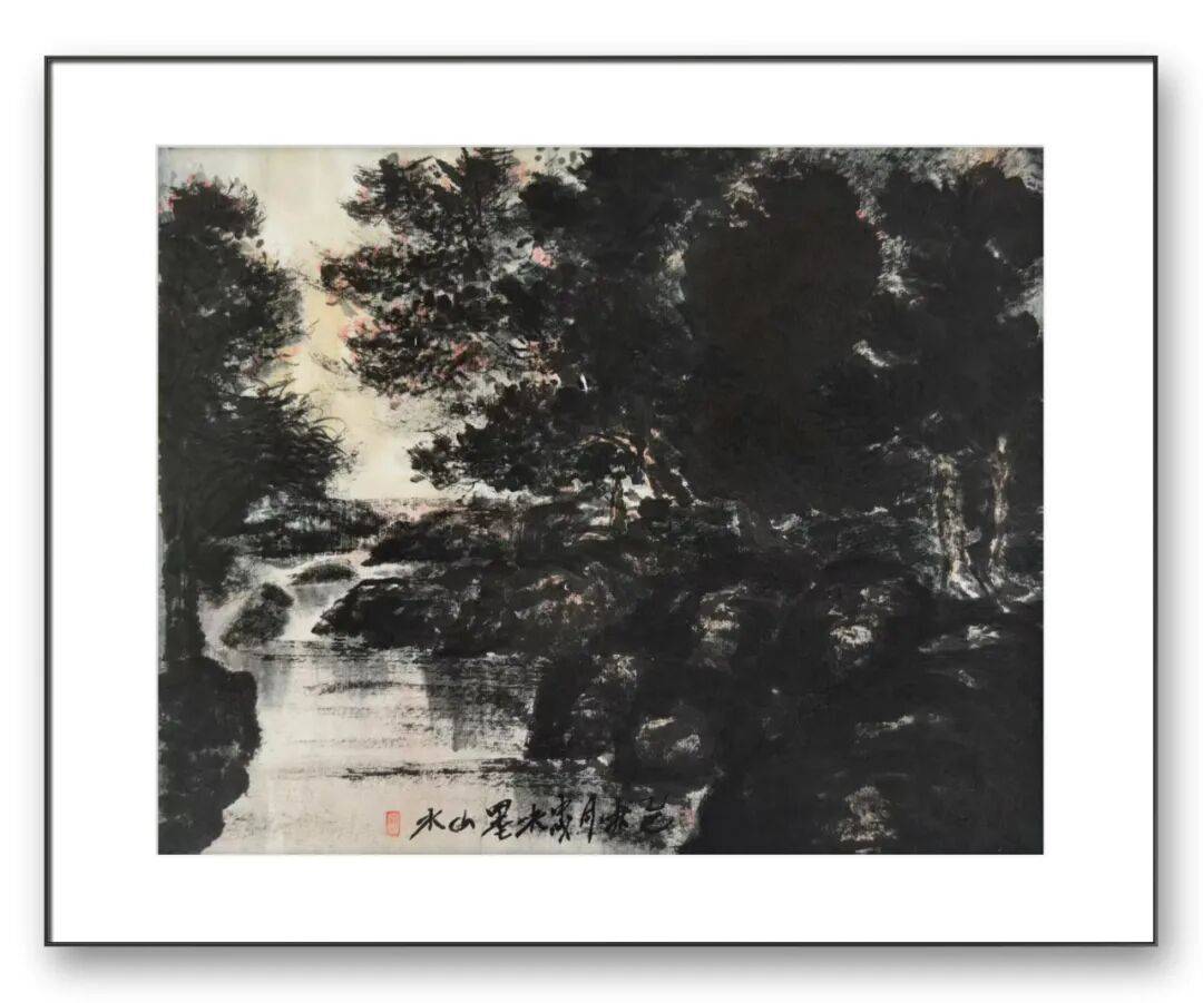 钱中诚先生的艺术之路,是一条“独辟蹊径”却“大道至简”的探索之路。他以苍润奇拙的笔法为骨,以澄怀味象的意境为魂,以枯润相济的墨色为肌,以色墨交融的泼彩为韵,在传统与现代的交汇处,构建了属于自己的艺术王国。先生的泼彩作品则将墨色与色彩的对话推向极致。黑松以焦墨写成,枝干如铁铸钢浇,而几枝桃花以淡彩泼洒,于浓墨重彩中透出一抹娇柔。墨的厚重与彩的明丽并非简单叠加,而是相互渗透、彼此成就,墨因彩而更显深邃,彩因墨而更具格调,开创了“色不碍墨,墨不碍色”的现代水墨新范式。