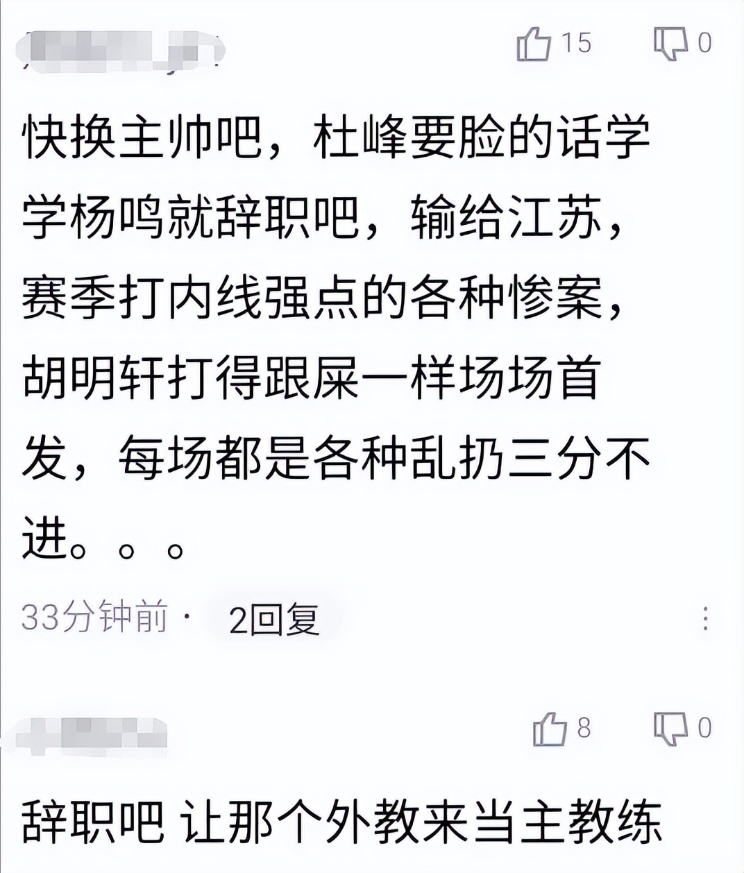 在篮板球比对手多了10个的情况下惨遭对手翻盘,这无疑非常泄气,赛季第3次被绝杀,让广东球迷非常不满,赛后,不少广东球迷再次对杜锋发起了“围攻”,再次喊话要求杜锋下课。