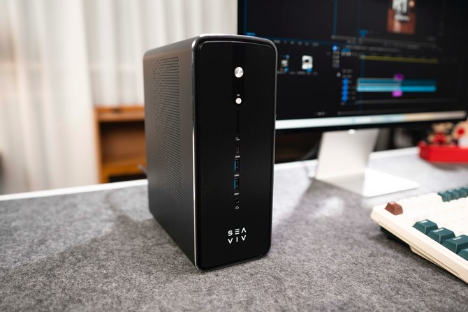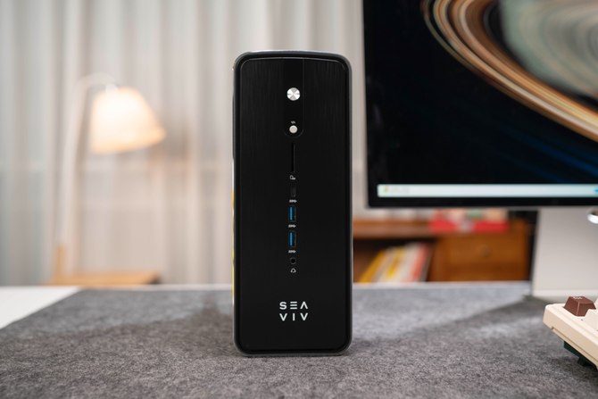 在外观设计上,SEAVIV AideaStation R1 走简约风格,整体机身采用金属材质,既保证了耐用性,也为设备散热提供了一定助力,侧板设计有散热开孔,能有效帮助机身内部热量排出。机身边缘做了圆角处理,日常搬运或摆放时不会硌手,细节处考虑得十分周到。