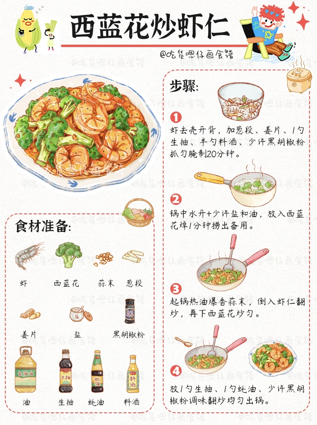 - 万能搭配:除了虾仁,还能换成鸡胸肉丁、瘦牛肉片,西兰花也能换成菜花、荷兰豆,做法不变,减脂餐不重样。