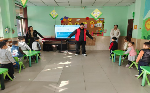 互动游戏环节将活动气氛推向高潮。志愿者们组织开展“雪花轻舞”情景游戏,引导孩子们化身“小雪花”,随着口令轻轻摆动、旋转、跳跃,在轻松活泼的节奏中尽情舒展身心。游戏既激发了孩子们的参与热情,又在欢乐互动中拉近了彼此的距离,让温暖在游戏中流淌。