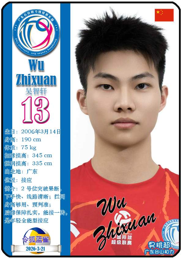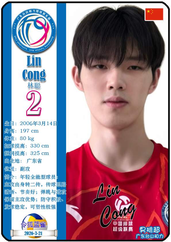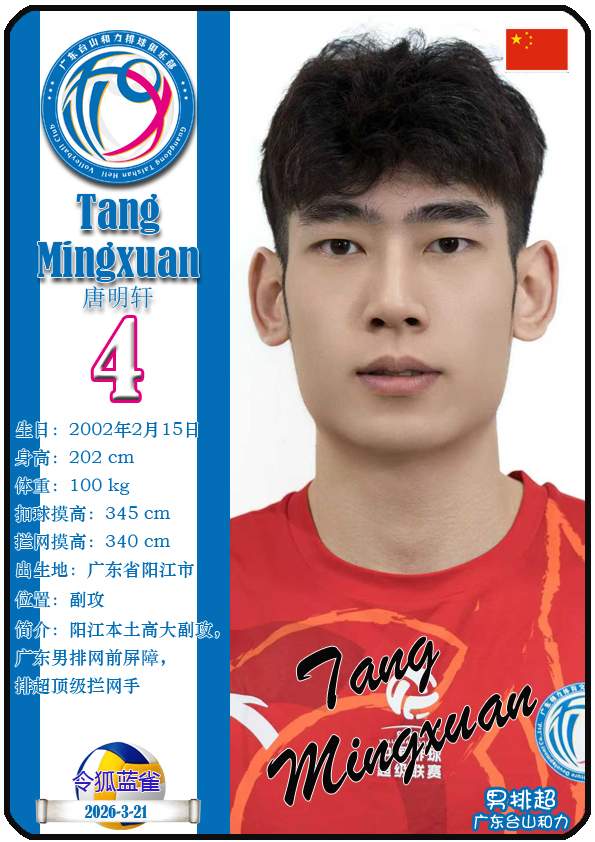本篇内容数据来源:排超官网-广东台山和力男排,https://league20252026.volleyballchina.com/teamDetail?teamId=15