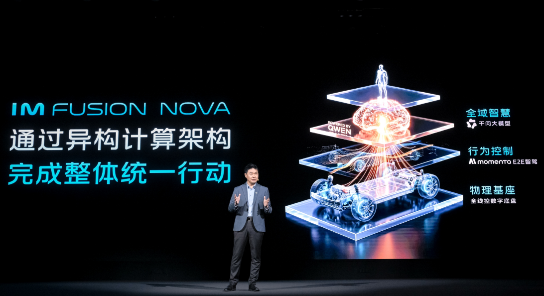 IM Ultra Agent的核心,是以三大创新技术突破,行业首创“舱驾一体、全域融合”的智能架构IM Fusion Nova,重新定义智能汽车的架构标准。该架构从底层完成 “基因级” 重构,彻底打通线控底盘、智驾AI、智舱AI三大核心系统,使AI不仅能精准理解用户意图,更能全域掌控车辆动作,真正触达物理世界!