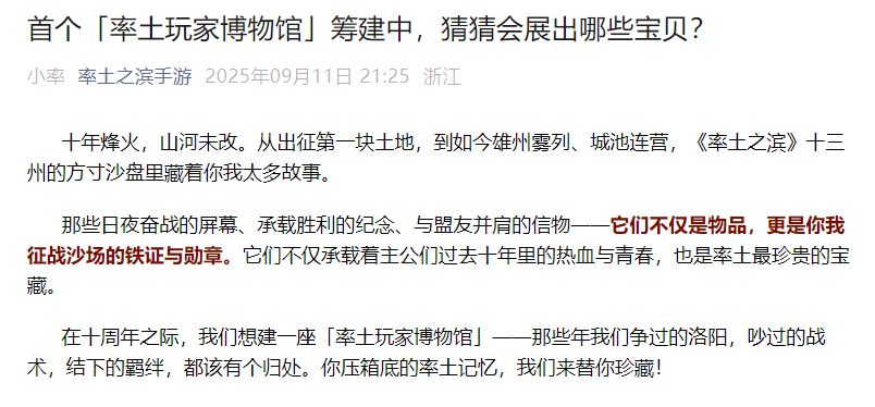 玩了这么久的游戏,你见过哪款游戏的官方,给玩家搭博物馆的?