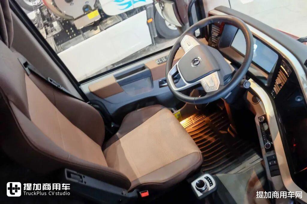 为此,东风天龙KX重型燃油载货车采用了行业领先的超大空间驾驶室,基于旗舰东风天龙KX王者平台,内部净高最高可达2115毫米,为驾驶员提供了充裕的头部与活动空间。配备的高端伊斯灵气囊减震座椅,具备通风、加热、多项调节功能,并采用亲肤皮质包覆,有效过滤路面振动,长途驾驶不易疲惫,让每一次出行都成为舒适体验。