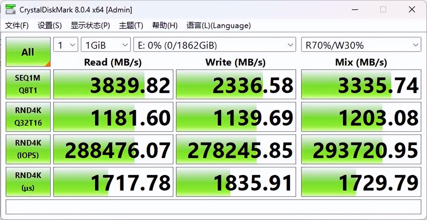 接下来我们还进行了磁盘性能测试,得益于PCIe 5.0×4 M.2的高带宽,磁盘读写都突破了12GB/s的超高速率。