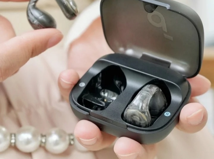 这款我觉得特别适合通勤党。开放式耳夹单只 5.9g 重,戴在耳朵上没什么负担,我从早上出门戴到晚上下班,耳朵也不会疼。耳夹的形状贴合耳朵,不管地铁怎么晃,都不会滑下来,之前戴别的耳机,有时候还得用手扶一下,这个完全不用。