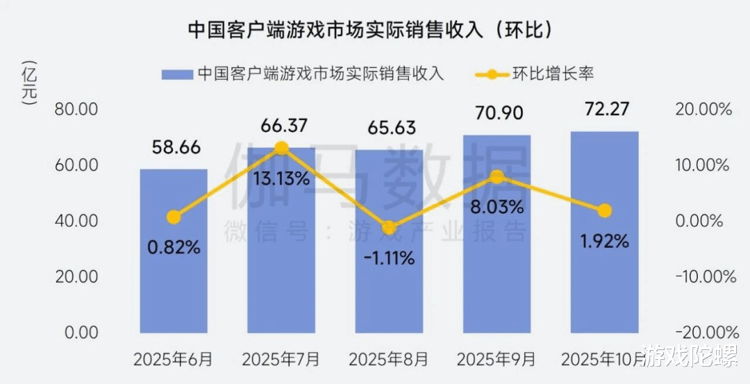 近期,伽马数据发布了《2025年10月中国游戏产业月度报告》,报告显示,10月中国游戏市场收入达313.59亿元(人民币),环比增长5.66%,同比增长7.83%。整体呈现稳步复苏态势。