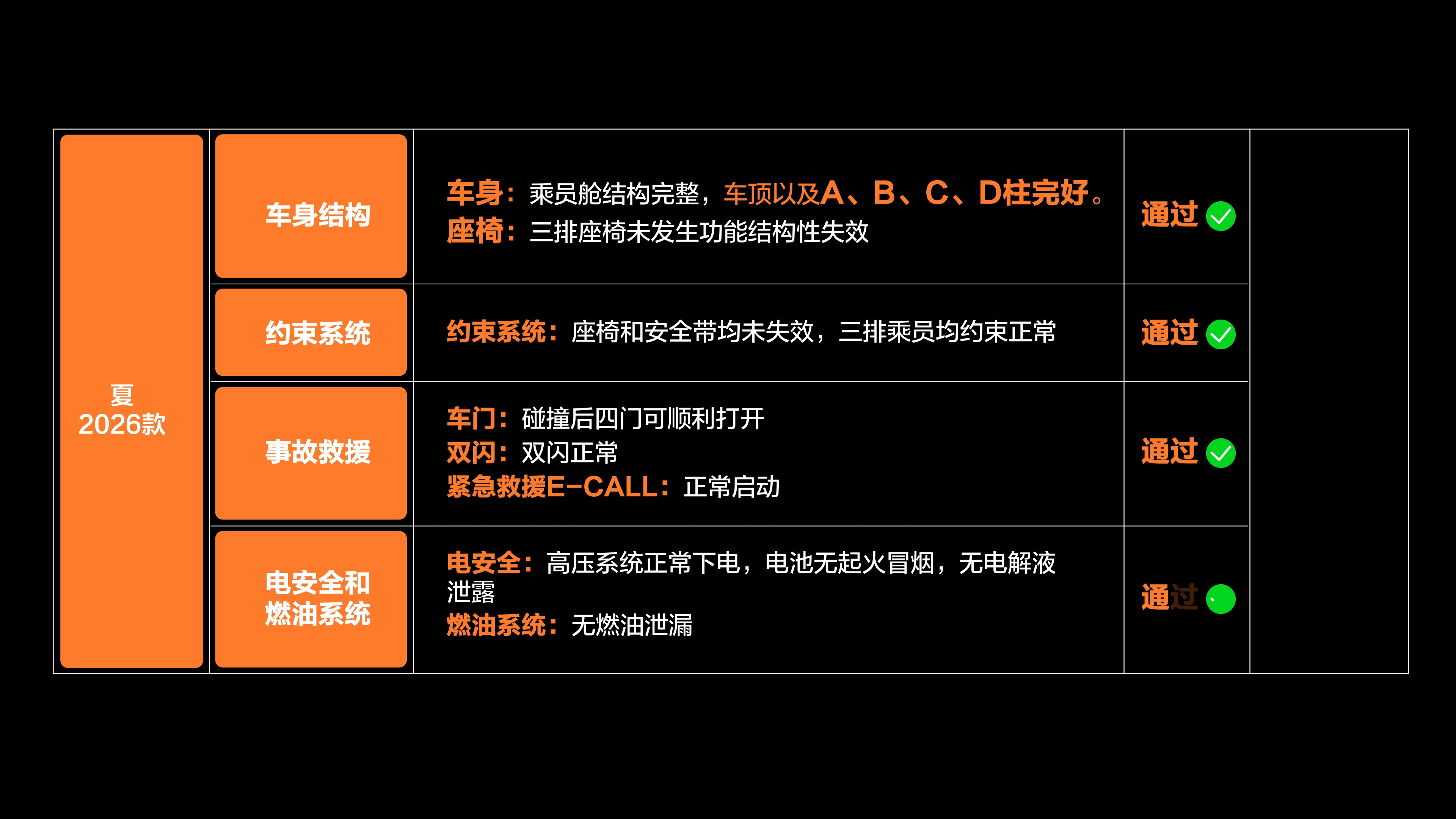 比亚迪夏真的太硬核了!官方超美标测试,扛住了82.6 km/h、70%重叠+10°偏角的高速追尾,撞完乘员舱完好、四门正常开启、E-CALL紧急救援秒接通。车身用的是笼式超高强钢骨架,追尾时冲击力全被车尾吸能区“吃掉”,座舱纹丝不动,再加上10气囊全覆盖,简直就是给全家套了个金钟罩!
