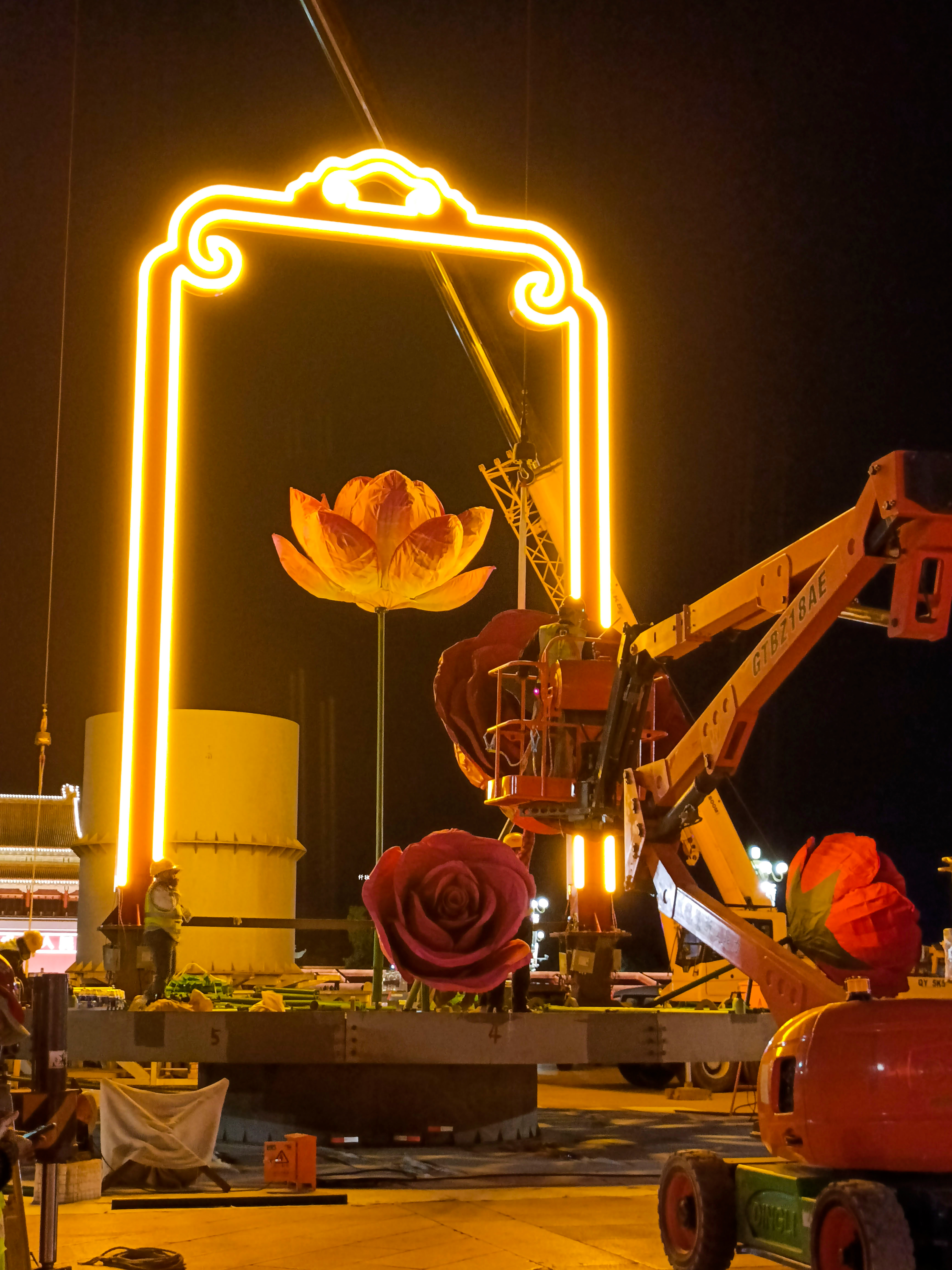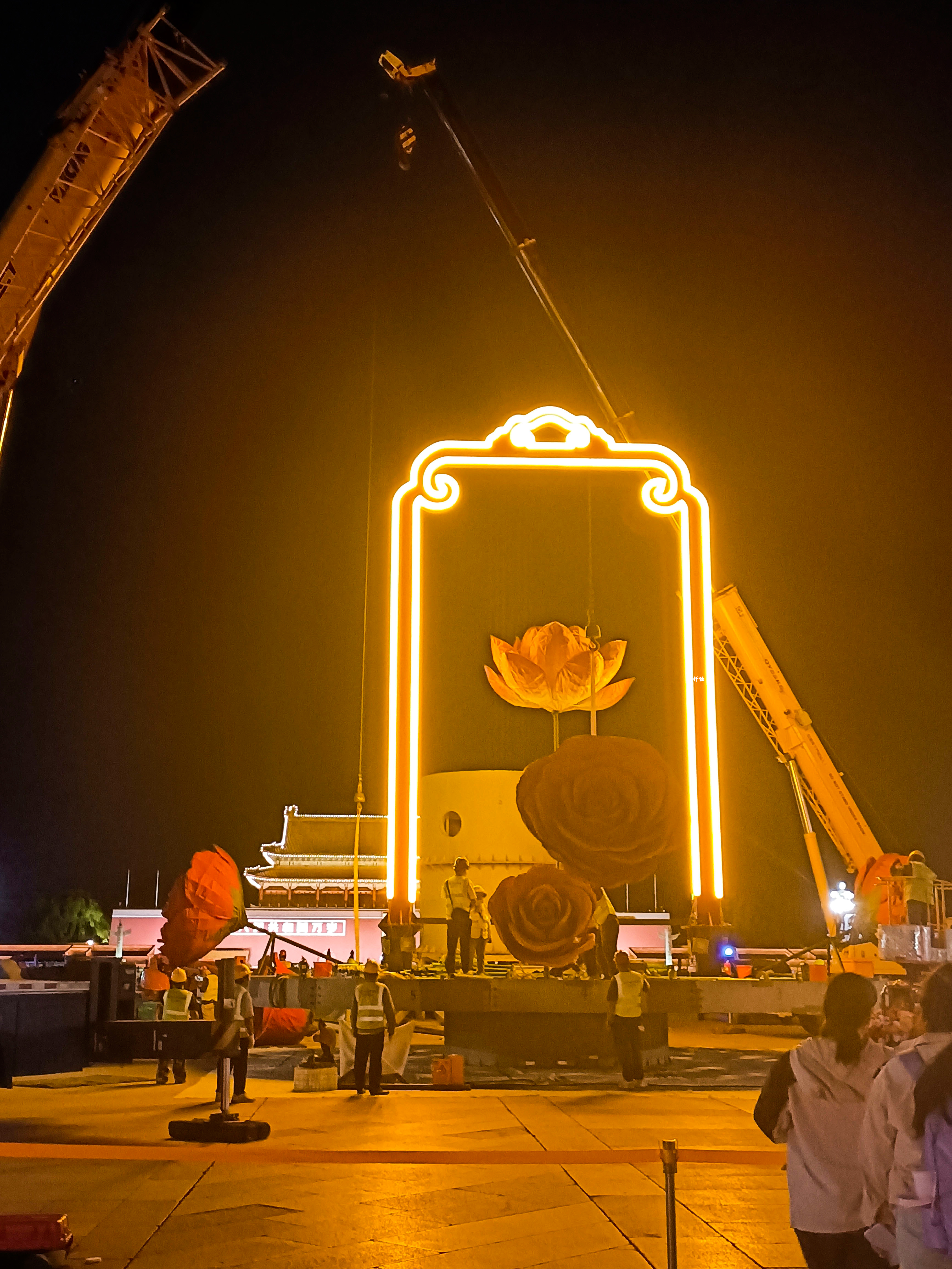 天安门的国庆大花篮已经开始启动了,即将上新。目前还在准备布置中,有mini版花篮模型,可以看到国庆花篮的大概样子,花朵被灯光照亮,真的好好看