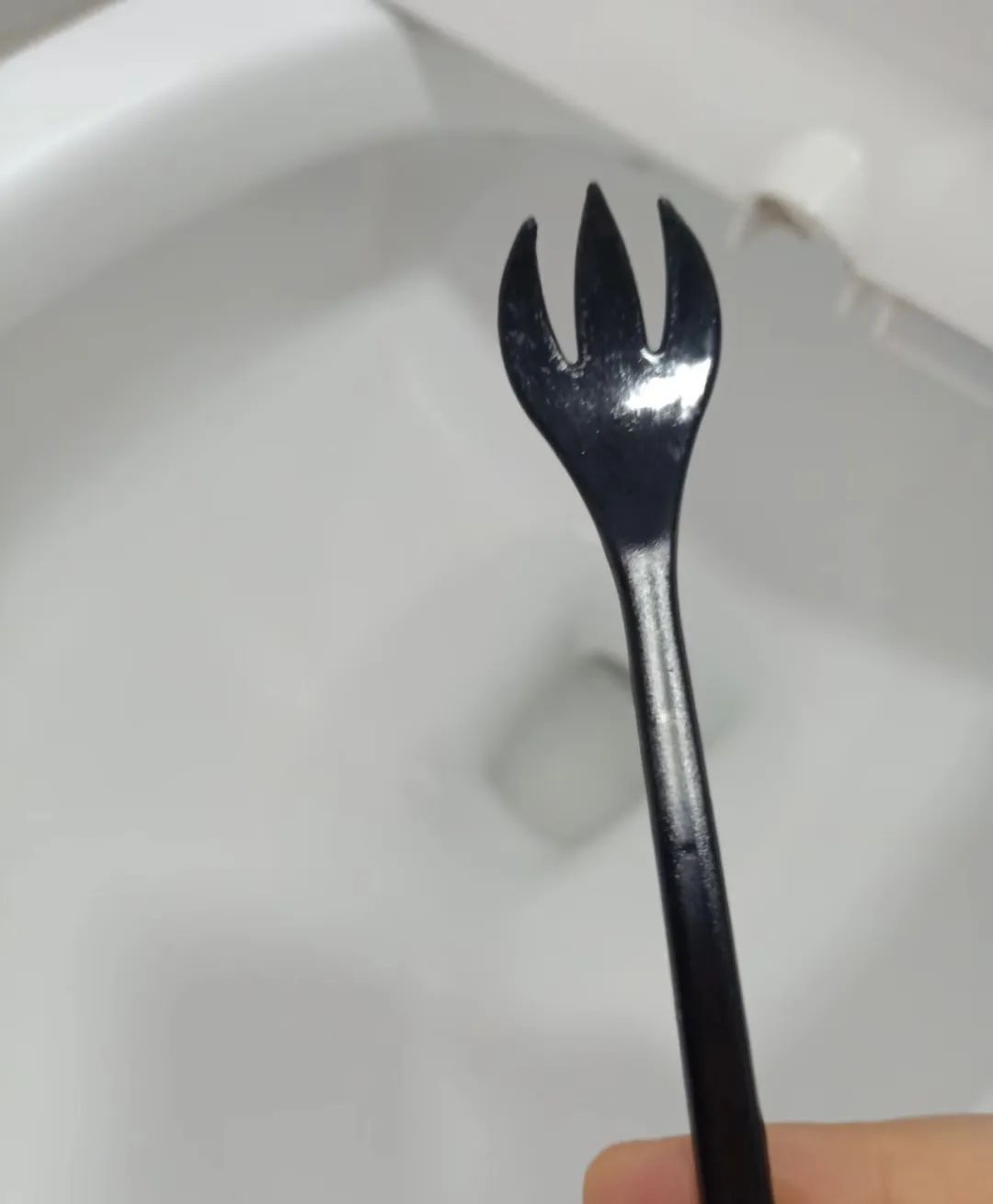 马桶缝隙里的污垢总是难以清除,用刷子刷吧,又容易刮伤马桶表面,蛋糕叉子就可以派上用场了。