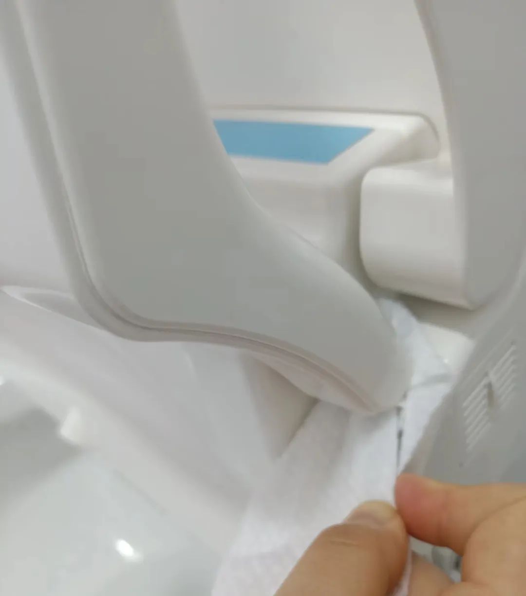 把蛋糕叉子用洁面巾包裹住,深入马桶缝隙,轻轻来回擦拭,那些顽固的污垢就乖乖投降了。